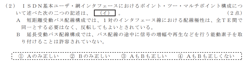 ISDN基本ユーザ・網インタフェースのバス配線において、極性(プラスとマイナスのようなもの)は全TE(端末)間で統一されていなければなりません。極性がバラバラだと、信号が正しく伝送されず通信エラーの原因となります。