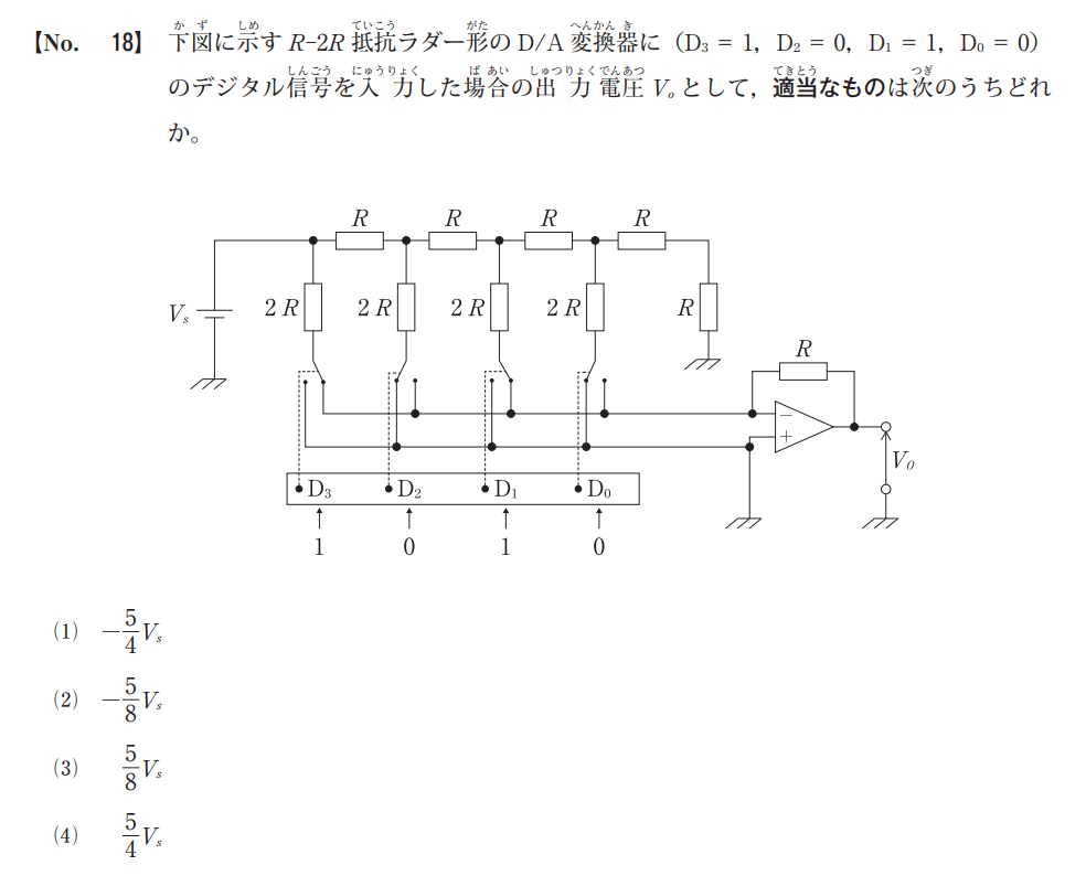 Vo=(12+04+18+016)VsV_o = – \left( \frac{1}{2} + \frac{0}{4} + \frac{1}{8} + \frac{0}{16} \right) V_s
