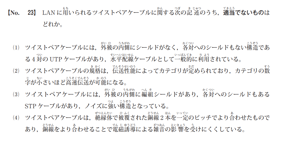本記事は、「令和7年度 1級電気通信工事施工管理技士 1次試験 試験問題A 問21~問25」の解説になります。