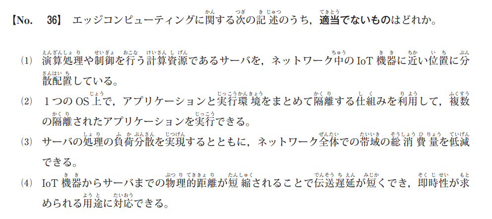 この説明文の内容は「コンテナ(Dockerなど)」という仮想化技術に関するものです。エッジコンピューティングにおいてもコンテナ技術が使われることはありますが、エッジコンピューティングそのものの説明としては不適切です。