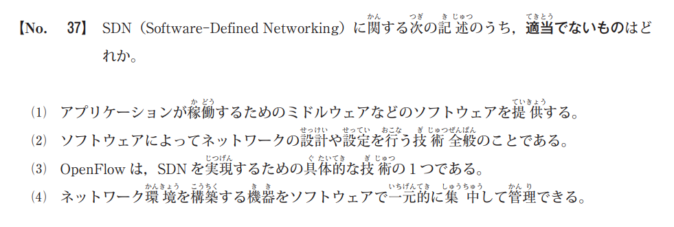 この記述は一般的に PaaS(Platform as a Service) やミドルウェアそのものの説明です。SDNはあくまで「ネットワークの構成や制御」をソフトウェアで行うものであり、アプリケーション実行用のミドルウェアを提供することが主目的ではありません。