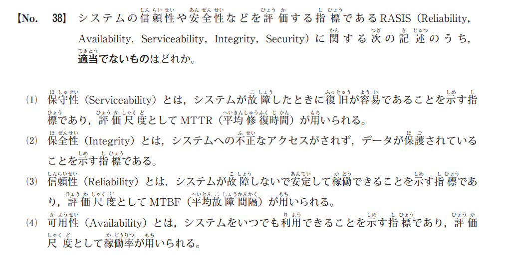 MTTR(Mean Time To Repair)が短いほど、修理が早く「保守性が高い」と言えます。