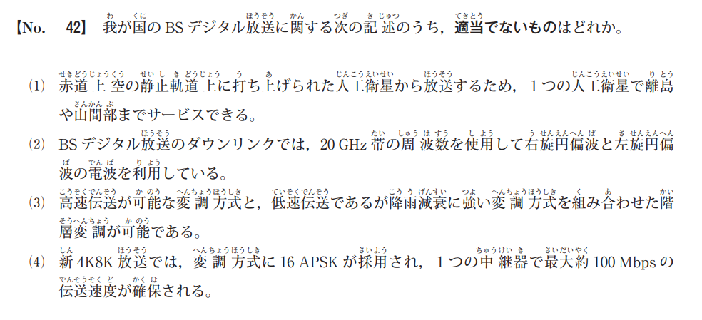 円偏波(右旋・左旋)を利用してチャンネル数を増やしている点は正しい記述です。